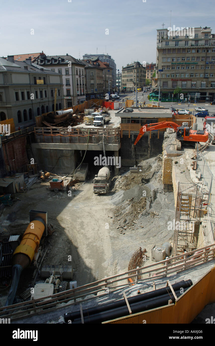 Travaux De Construction De Prolonger La Ligne De Metro Et La Construction D Une Station A La Place De La Riponne Lausanne Suisse Europe Photo Stock Alamy